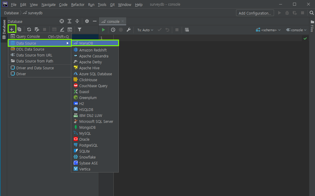 - DataGrip을 실행 시킨 후 아래처럼 MariaDB를 선택한다.